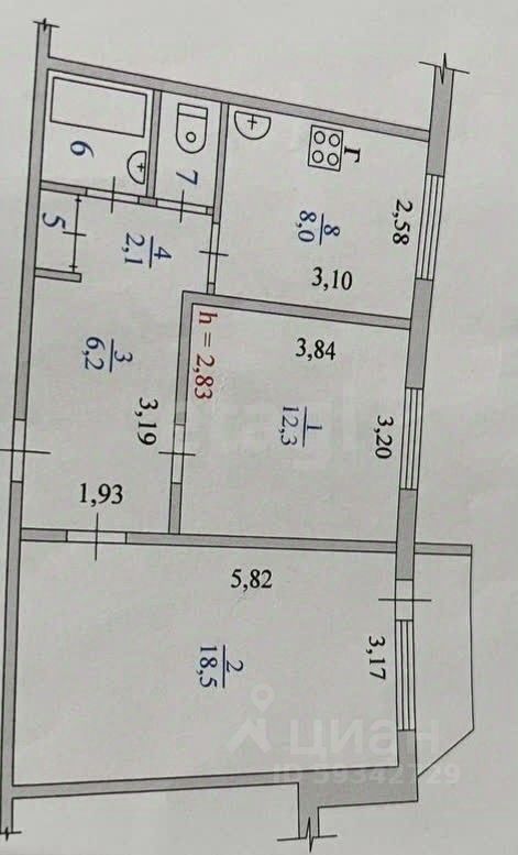 Продается двухкомнатная квартира в доме 17 по улице Южной.