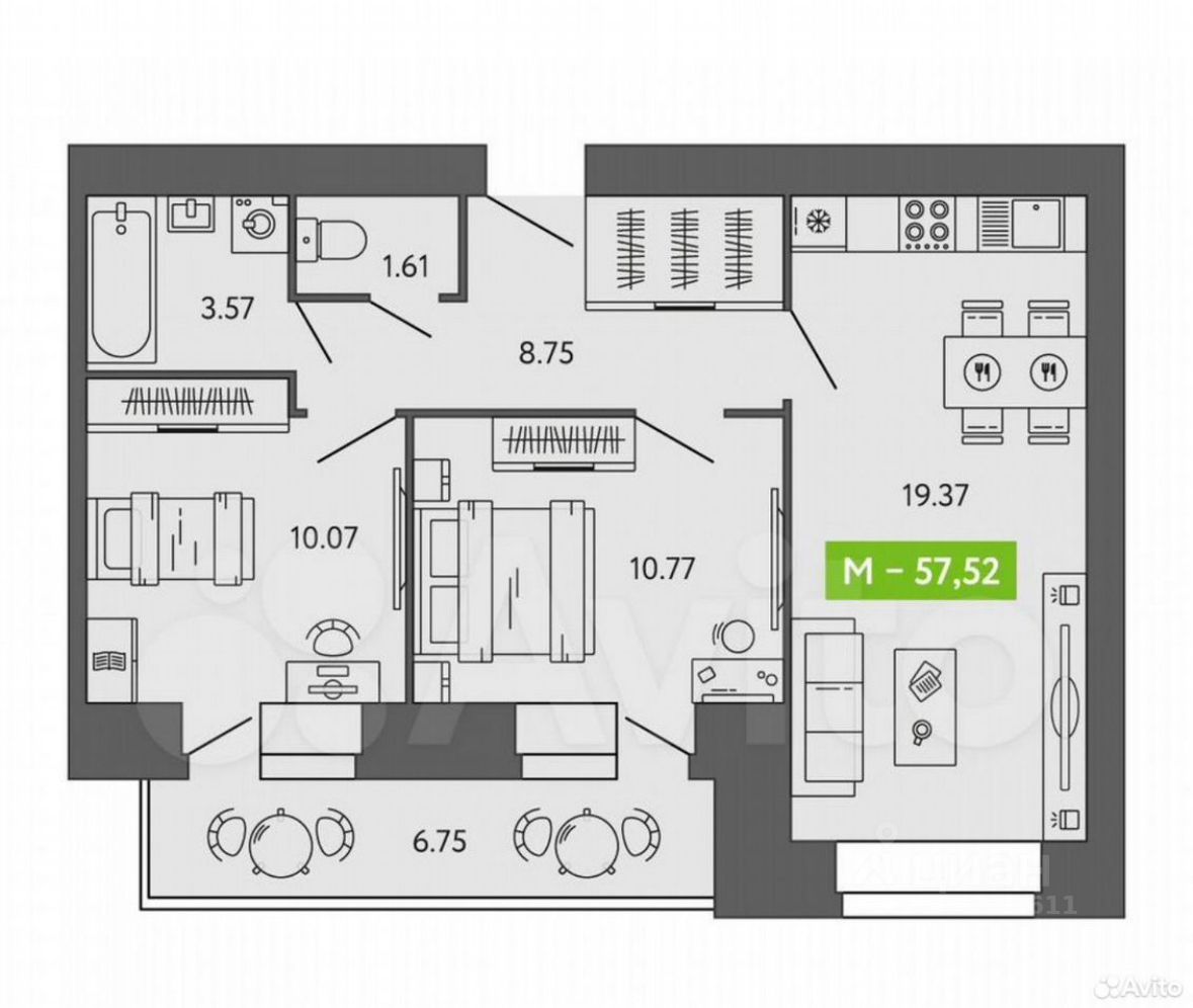 Квартира с потолками до 3.0 метров, увеличенный слой шумоизоляции в полах и перегородках, стеклопакеты энергоэффективные.