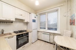 - покупателю остается: кухонный гарнитур, варочная газовая панель, духовой шкаф, вытяжка, стол, стулья, микроволновая печь, два встроенных шкафа - купе, стенка в большой комнате, диван, стиральная машина, все приборы освещения, карнизы.