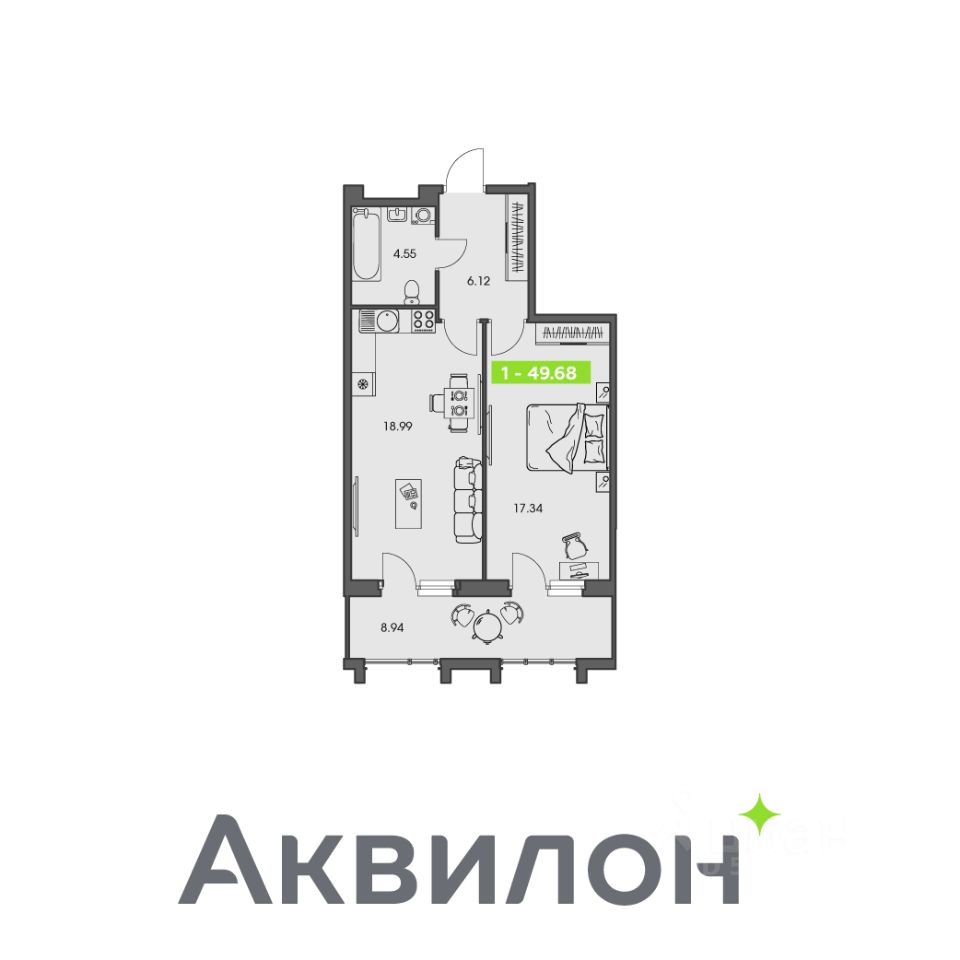 Продаётся 1-комнатная квартира в строящемся доме (Володарского, 34к1), срок сдачи: III-кв. 2028, общей площадью 49.68 кв.м., на 1 этаже. Новый жилой комплекс "Аквилон NOVA" от застройщика "Группа Аквилон" расположен по адресу: г. Архангельск, улица Володарского.