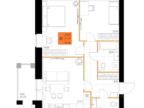 Продаётся 2-комнатная квартира в строящемся доме (Индустриальная, 35А), срок сдачи: IV-кв. 2027, общей площадью 63.56 кв.м., на 2 этаже. Новый жилой комплекс "Северные тона" от застройщика "ГК Кронекс" расположен по адресу: г. Северодвинск, Индустриальная улица, 35А.