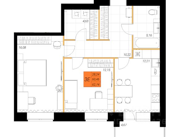 Продаётся 2-комнатная квартира в строящемся доме (Индустриальная, 35А), срок сдачи: IV-кв. 2027, общей площадью 62.74 кв.м., на 2 этаже. Новый жилой комплекс "Северные тона" от застройщика "ГК Кронекс" расположен по адресу: г. Северодвинск, Индустриальная улица, 35А.