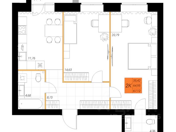 Продаётся 2-комнатная квартира в строящемся доме (Индустриальная, 35А), срок сдачи: IV-кв. 2027, общей площадью 67.12 кв.м., на 1 этаже. Новый жилой комплекс "Северные тона" от застройщика "ГК Кронекс" расположен по адресу: г. Северодвинск, Индустриальная улица, 35А.