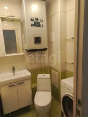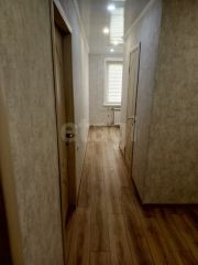 В квартире выполнен качественный современный ремонт: уложен ламинат, установлены натяжные потолки и пластиковые окна во всех помещениях, кроме одной комнаты. Санузел совмещенный, оборудован водонагревателем, который остается новому владельцу.