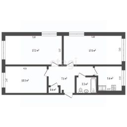 Объект отличается рациональной планировкой с изолированными комнатами площадью 17,2 кв. м, 17,2 кв. м и 10,3 кв. м, что обеспечивает комфортное проживание для семьи. Кухня 5,6 кв. м функционально организована.