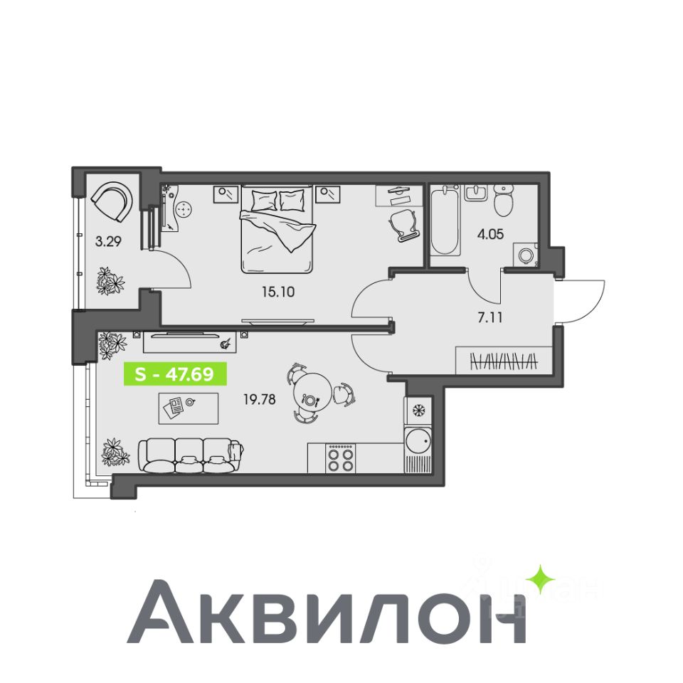 Общая площадь47,69 м²