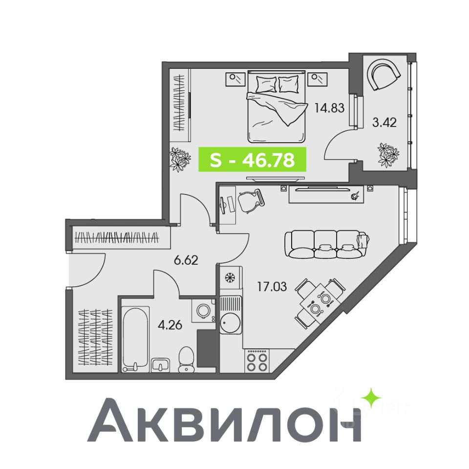 Общая площадь46,78 м²