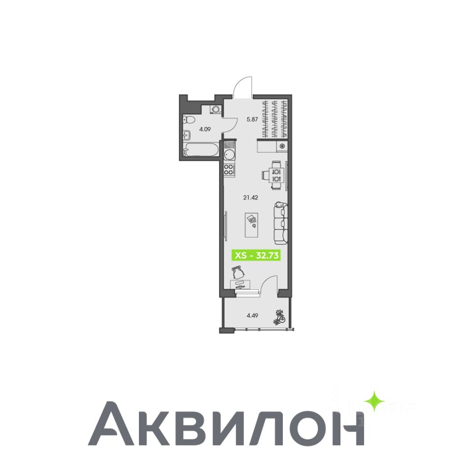 Общая площадь32,73 м²
