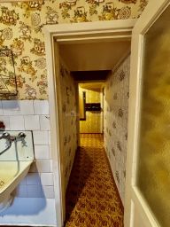 Квартира расположена на третьем этаже пятиэтажного кирпичного дома, построенного в 1951 году. Общая площадь составляет 43,4 кв. м, из которых 30 кв. м — жилая площадь. Две изолированные комнаты с окнами на разные стороны имеют площадь 15 и 16 кв. м соответственно. Высота потолков — 2,6 м.