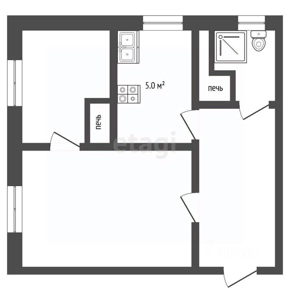 Общая площадь: 38,8 м2 (жилая — 24 м2, кухня — 10 м2).