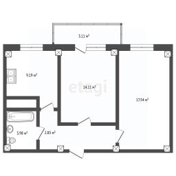 Планировка: Две изолированные комнаты (17 кв. м и 14 кв. м), кухня 9 кв. м