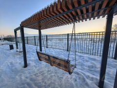 Для детей- охраняемая площадка для игр и спорта, для взрослых- угол для релаксации с качелями и с видом на реку.