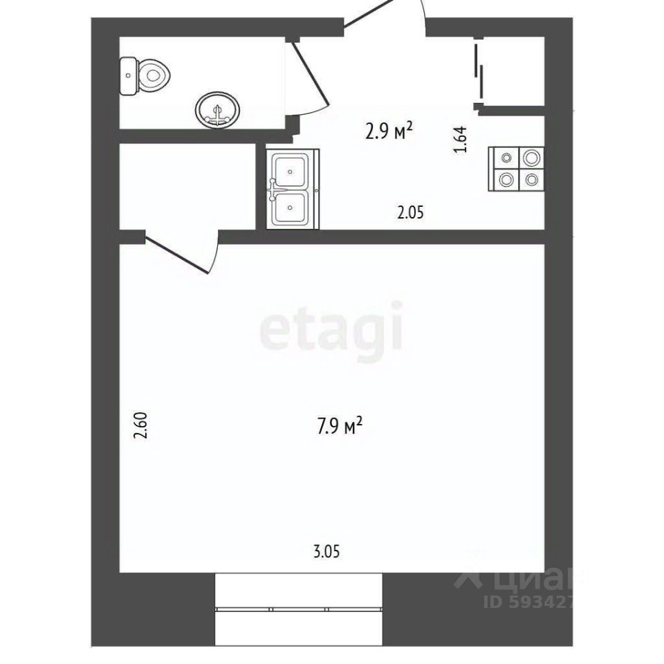 - площадь 17,1 кв.м