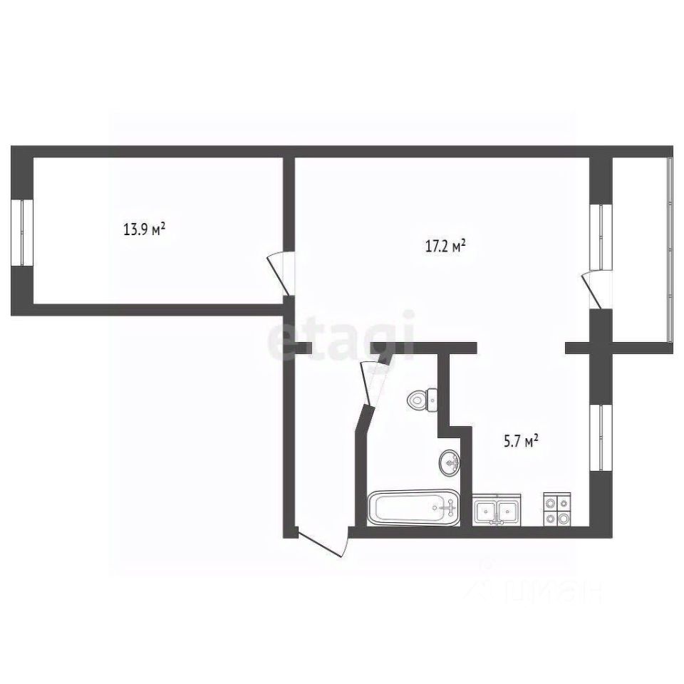 В квартире вместительные комнаты (13,9 кв.м. и 17,2 кв.м.), кухня (5,7 кв. м.), совмещенный санузел, окна и застекленный балкон выходят во двор. Установлены газо-, электросчетчики (два тарифа) и счетчики на воду.