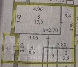 Жилая площадь составляет 17 кв. м, площадь кухни — 8,6 кв. м.