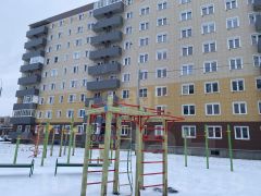 Окнa выходят в большoй двоp c детcкoй площадкoй, есть балкон с кухни.