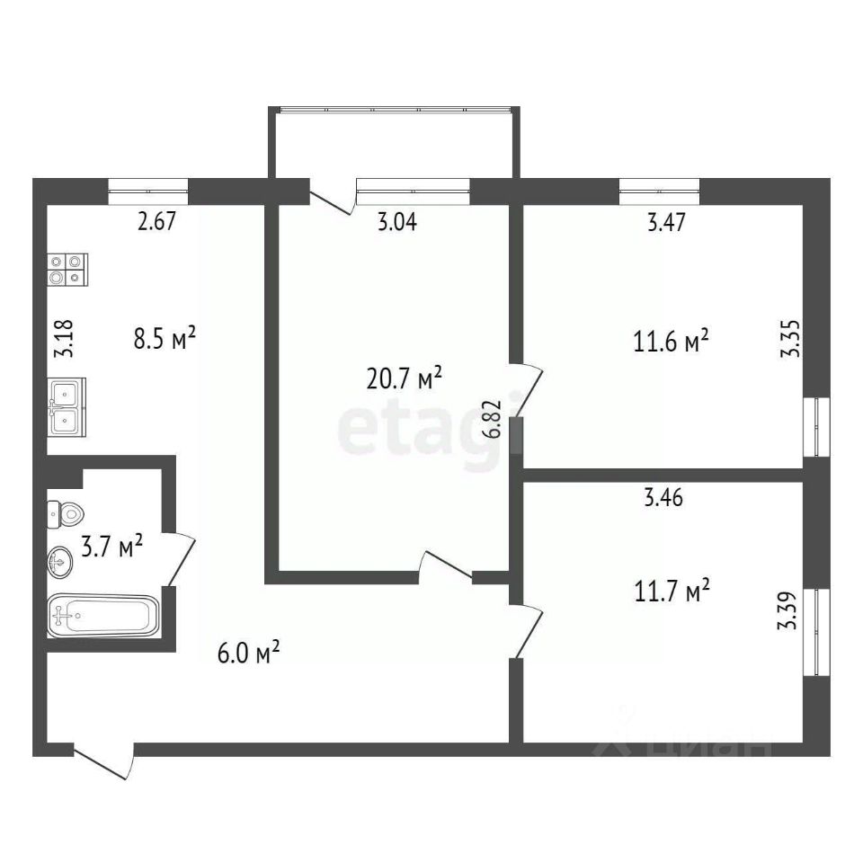 Продается просторная и уютная трехкомнатная квартира в доме 2012 гп по адресу Ленинградский, 331. Интересная планировка, просторная кухня 8.5 м и комнаты, балкон. Окна выходят на разные стороны дома. Покупателю останется кухня и встроенный шкаф-купе.