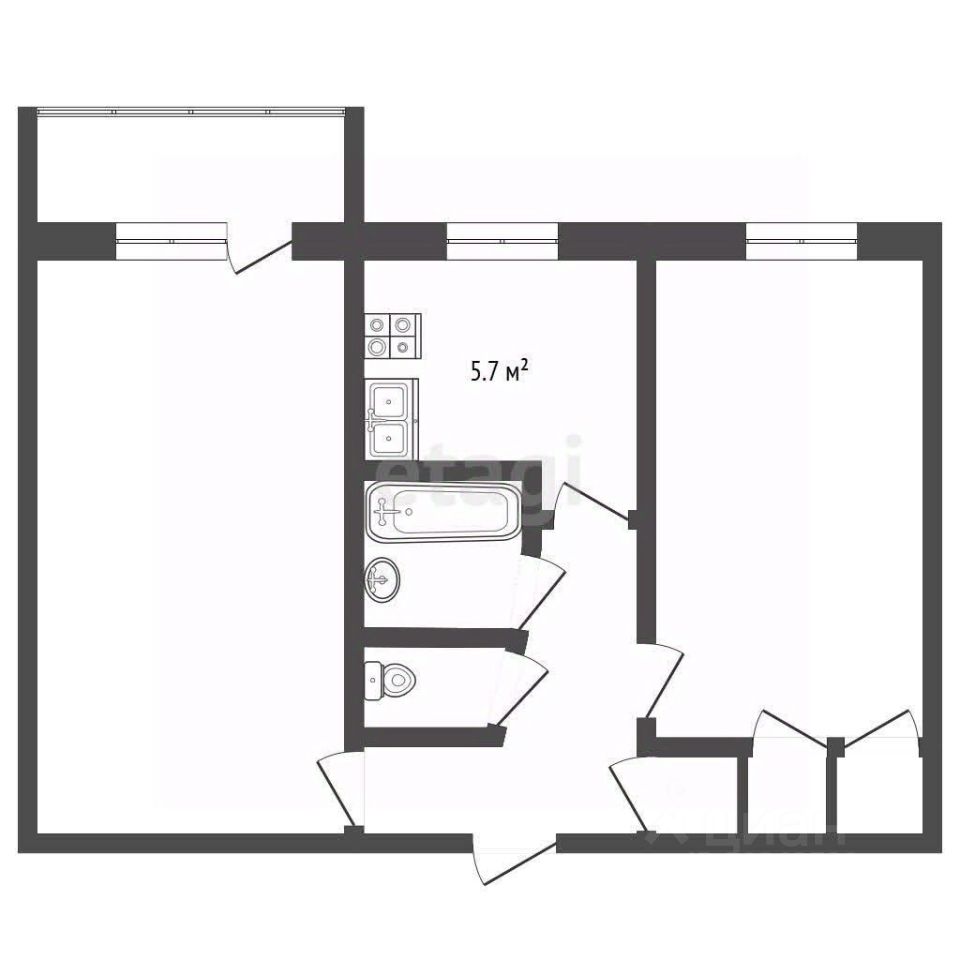 - Общая площадь: 43 м²