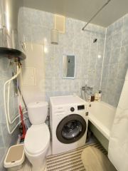 На полу ламинат, натяжные потолки, совмещенный санузел в кафеле, счетчики на приборы учета.