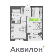 Общая площадь34,72 м²