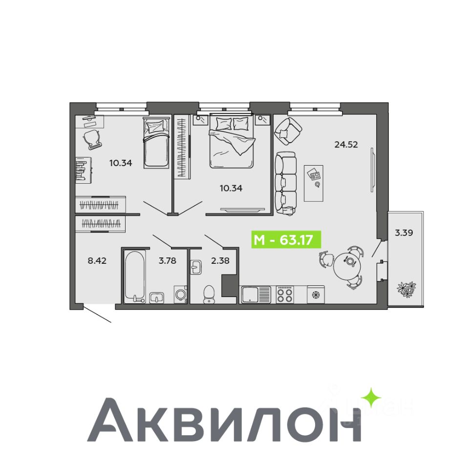 Общая площадь63,17 м²