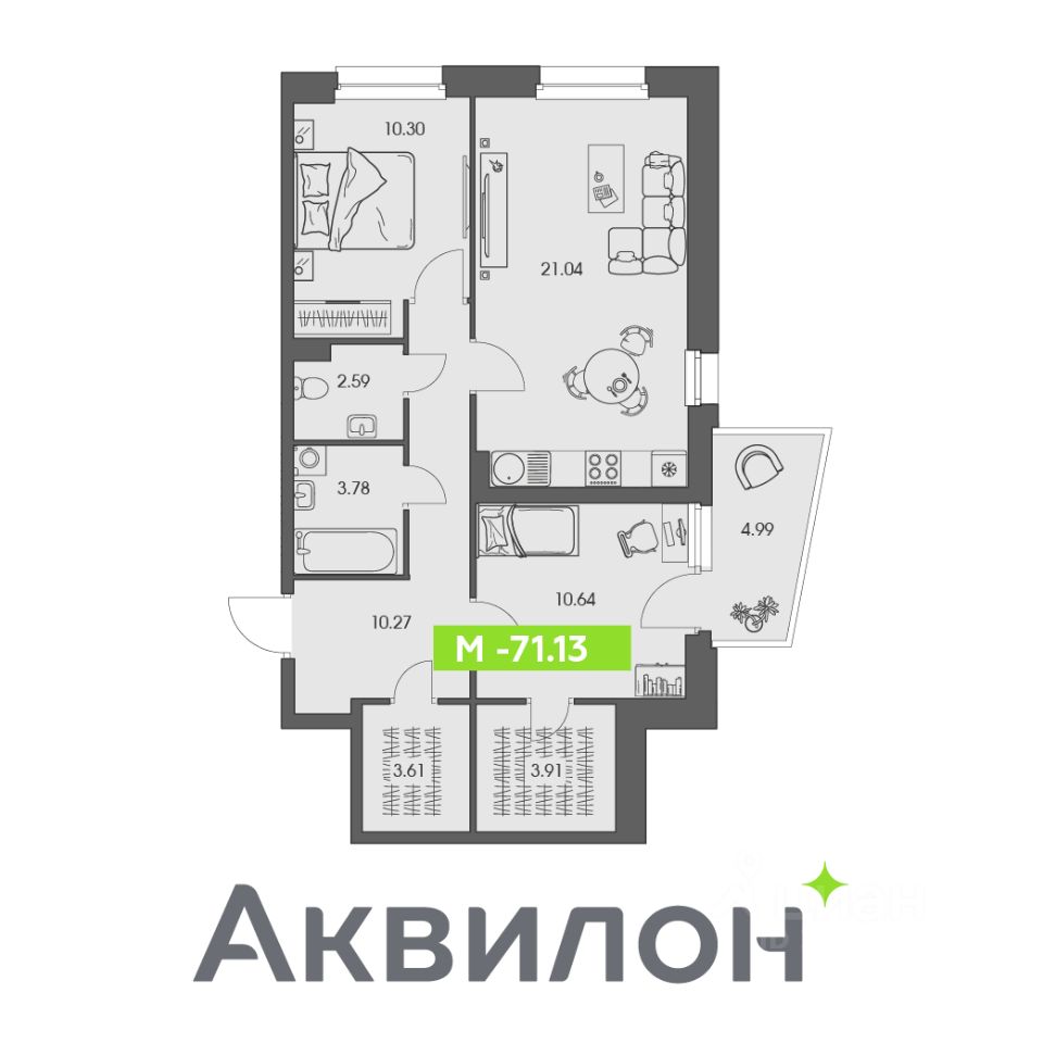 Отделка квартиры White box (готова к ремонту). Сдача в 2 кв. 2027 года!