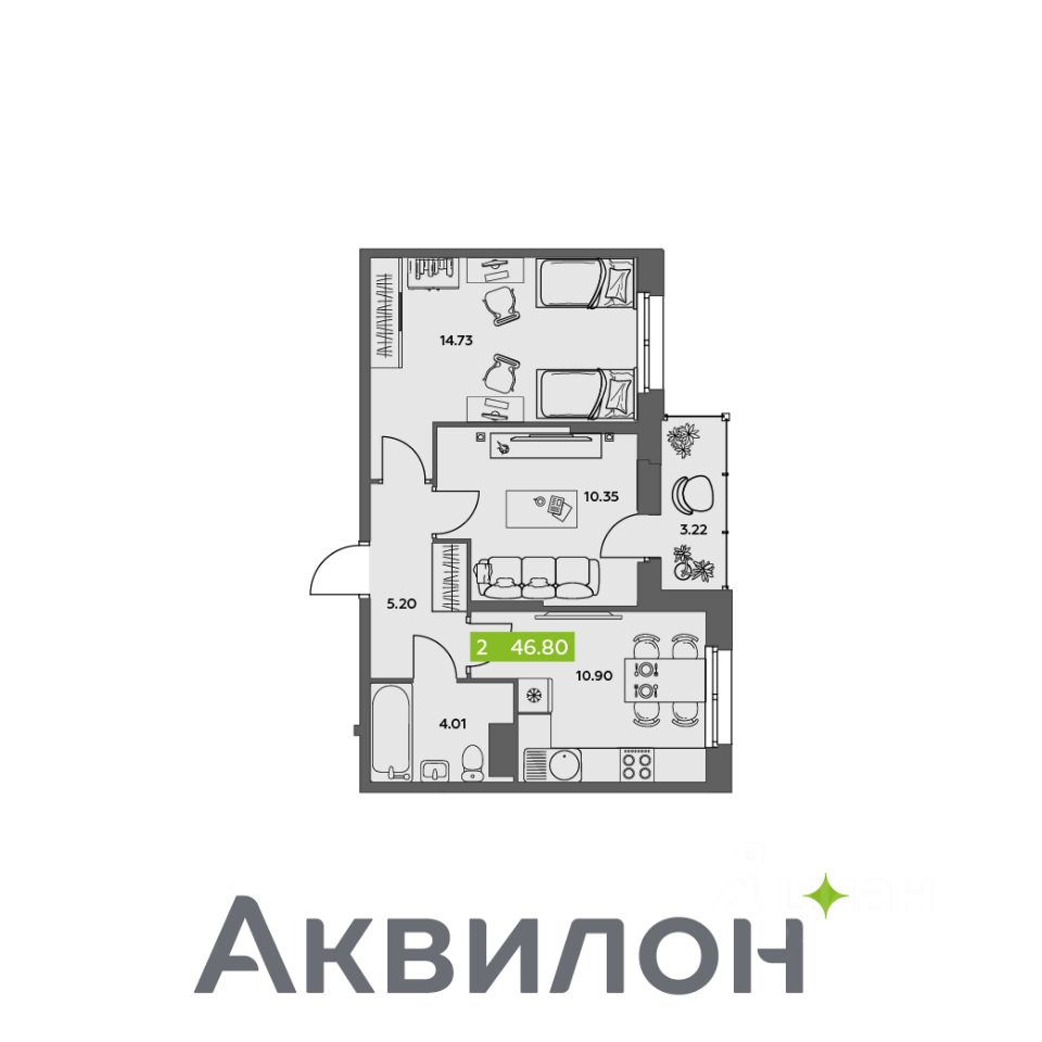 Общая площадь46,8 м²