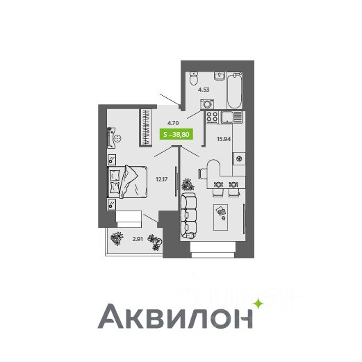 Общая площадь38,8 м²