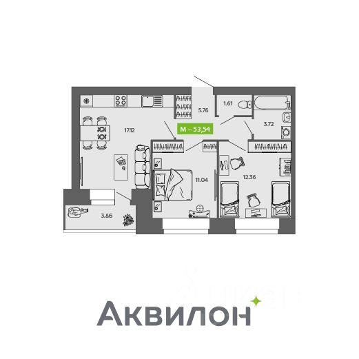 Общая площадь53,54 м²