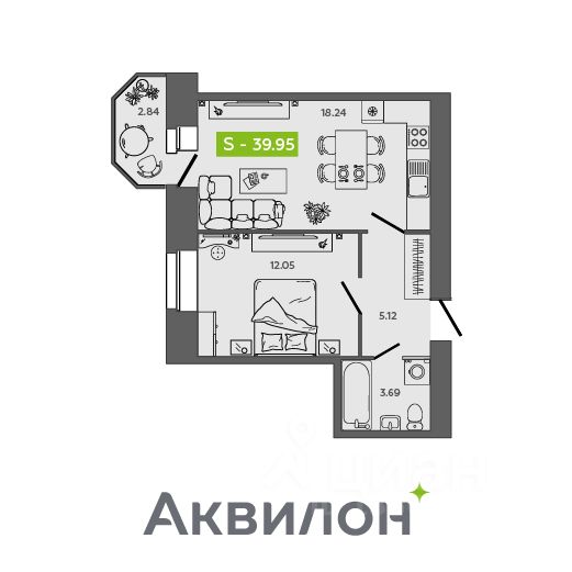 Общая площадь39,95 м²