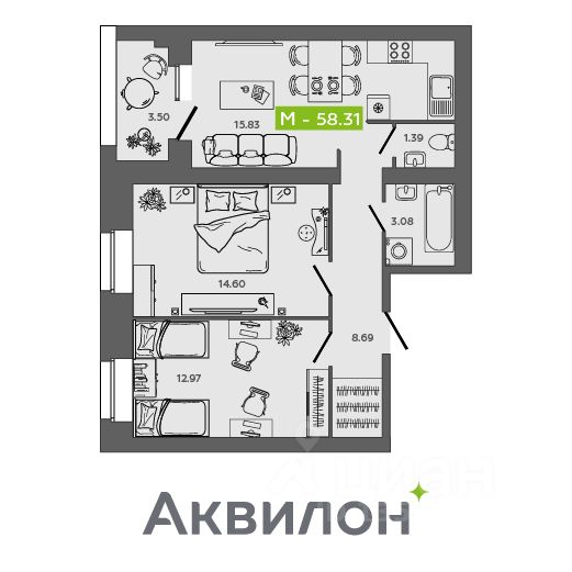 Отделка квартиры White box (готова к ремонту). Сдача дома: II кв. 2026 года!