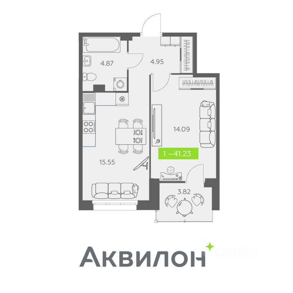 Общая площадь41,23 м²