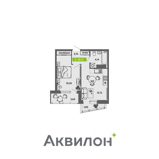 Общая площадь37,11 м²