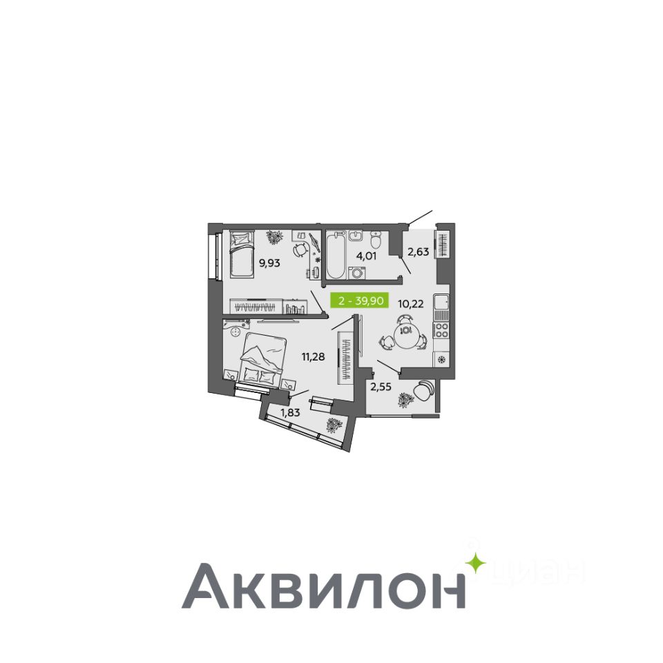 Общая площадь39,9 м²