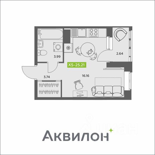 Общая площадь25,21 м²