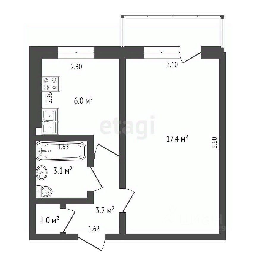 Жилая площадь: 17,4 м²