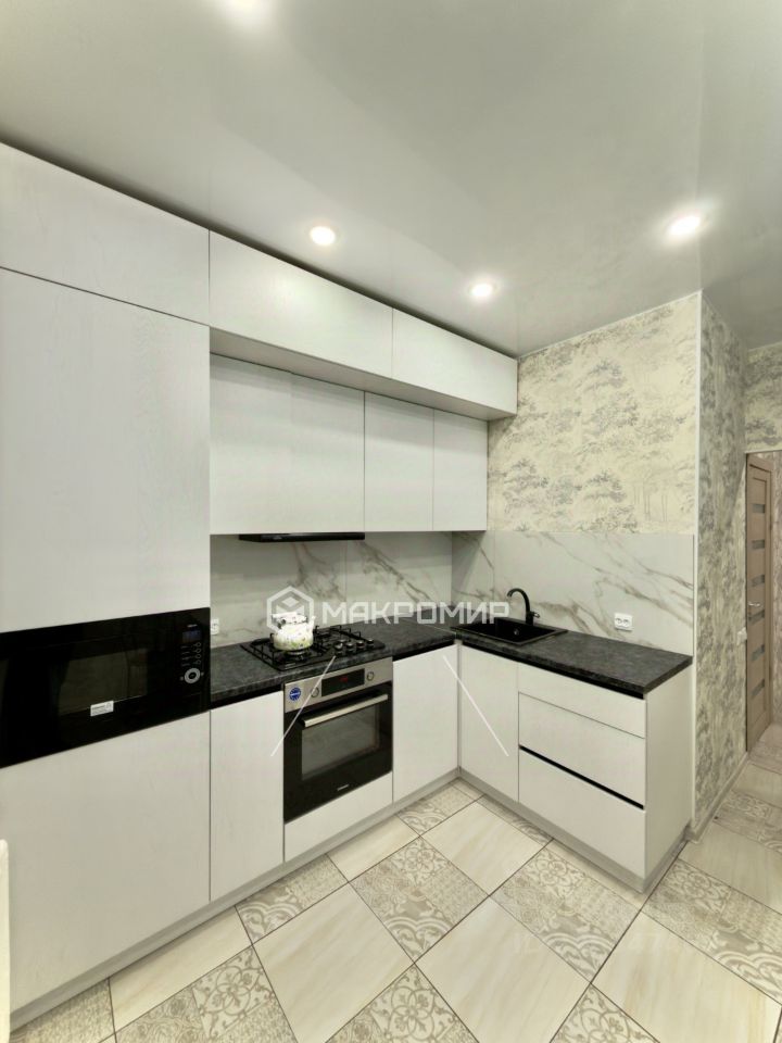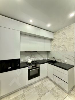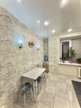 Квартира имеет две просторные, раздельные комнаты, застекленный балкон, большую кухню и совмещенный санузел. В комнатах и коридоре на полу постелен ламинат, на стенах обои, полоток натяжной сделан по всей квартире. На кухне, в санузле и прихожей на полу кафель. Санузел имеет полноценную ванну, раковину и стиральную машинку, а также установлена инсталляция. На кухне дорогостоящий кухонный гарнитур со встроенным духовым шкафом, микроволновой печью, холодильник, обеденная зона - стол и стулья.