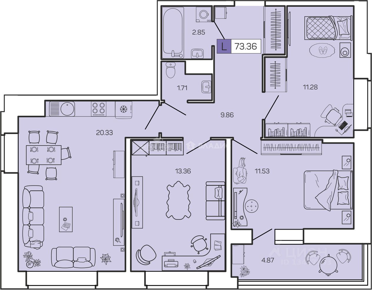 Квартира расположена на 13 этаже 16-этажного дома. Общая площадь квартиры составляет 73,36 кв.м, из которых 36,17 кв.м — жилая площадь, а 20,33 кв.м занимает просторная кухня-гостиная с двумя окнами с видом на ул.Тимме и во двор. Из одной из комнат имеется выход на просторную лоджию площадью 4,87 кв.м с панорамным остеклением. В квартире раздельный санузел. Высота потолков — 2,7 метра. В квартире выполнен ремонт white box, благодаря чему вы сможете оформить интерьер по своему вкусу.