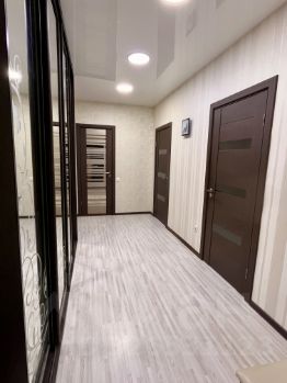 В квартире выполнен качественный евроремонт. Просторная кухня площадью 19 кв. м станет отличным местом для семейных обедов и встреч с друзьями. Санузел совмещенный, оборудован современной сантехникой. Два балкона с выходом на улицу и во двор дают возможность насладиться свежим воздухом и замечательным видом.