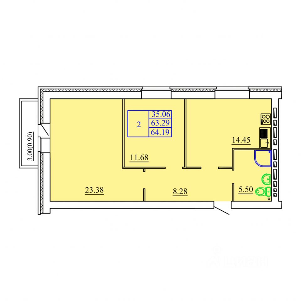 Продаётся 2-комнатная квартира в строящемся доме (Дом 1), срок сдачи: IV-кв. 2027, общей площадью 64.19 кв.м., на 6 этаже. Жилой комплекс комфорт-класса в Соломбале.