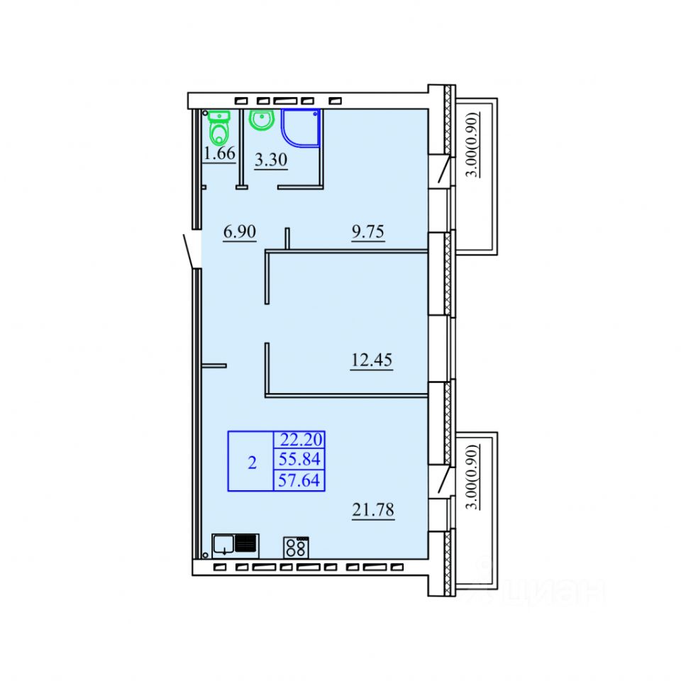 Продаётся 2-комнатная квартира в строящемся доме (Дом 1), срок сдачи: IV-кв. 2027, общей площадью 57.64 кв.м., на 8 этаже. Жилой комплекс комфорт-класса в Соломбале.