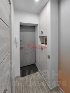В коридоре встроенный шкаф, полки в нише напротив двери.