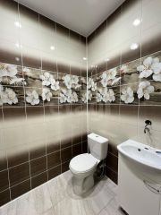 Установлены качественные оконные блоки с подоконниками, выровнены откосы, входная дверь—надежная и современная. Лоджия застеклена.