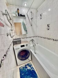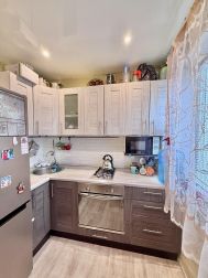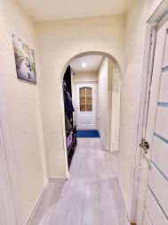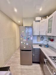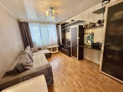 Общая площадь 44 м2. Окна выходят во двор. Возможность установки балкона. Комнаты раздельные на разные стороны по 14 м2. Есть вместительная гардеробная кладовка. Установлены стеклопакеты. Натяжные потолки. Постелен линолеум, в одной комнате ламинат. Санузел раздельный, облицован кафелем, трубы металлопластик. Счетчики свет/вода/газ. Частично остается мебель и техника.