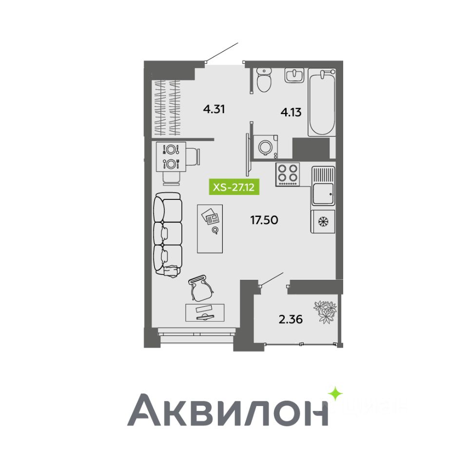 Общая площадь27,12 м²