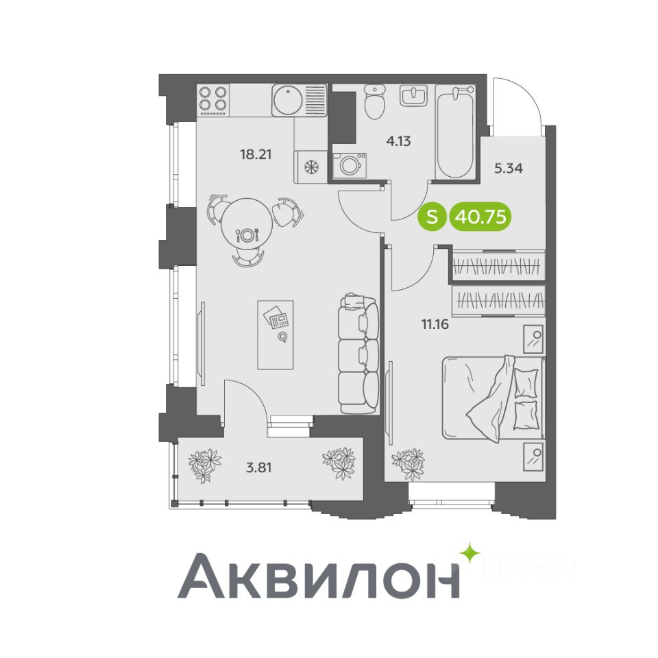 Общая площадь40,75 м²