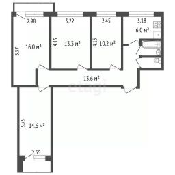 Площадь квартиры 77 кв. м. из них 55.7 жилая. Площадь кухни 6 кв. м. Все комнаты изолированные. Перепланировка узаконена.