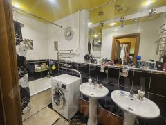 Просторный совмещенный санузел (5,5 кв. м.) отделан качественным кафелем, установлена новая сантехника и счетчики воды.