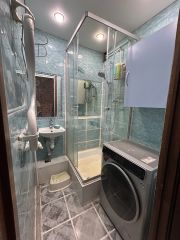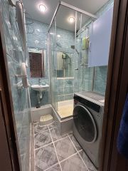Санузел раздельный, что является значительным преимуществом. В ванной комнате компактно размещена душевая кабина, что позволило удобно установить стиральную машину. Все инженерные системы приведены в порядок — установлены и поверены счетчики учета воды и газа.