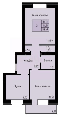 2-комнатная квартира 58,68 м², 3 этаж